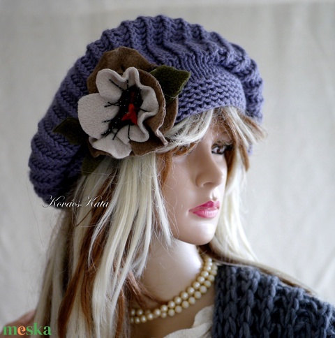 BORBÁLA / szürkéslila alpaka - kézzel kötött alpaka gomba sapka