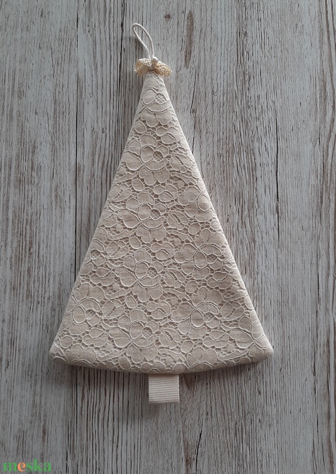 Natur csipkés karácsonyfa,ajtódísz,ablakdísz,Shabby chic stílusban