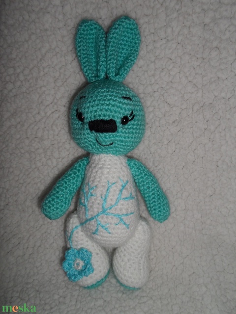 Türkizkék nyuszi hímzéssel