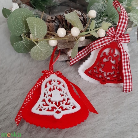 Filc karácsonyi dísz szett - kockás és pöttyös harangok