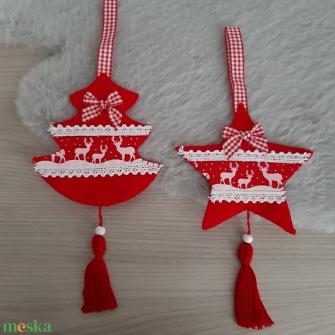 Filc téli duó - piros és fehér színvilágban, rénszarvasokkal