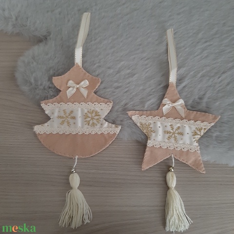 Filc téli duó - bézs és barna színvilágban, arany hópelyhekkel