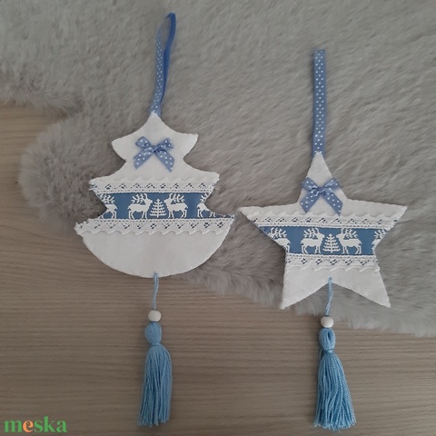 Filc téli duó - fehér és kék színvilágban, szarvasokkal