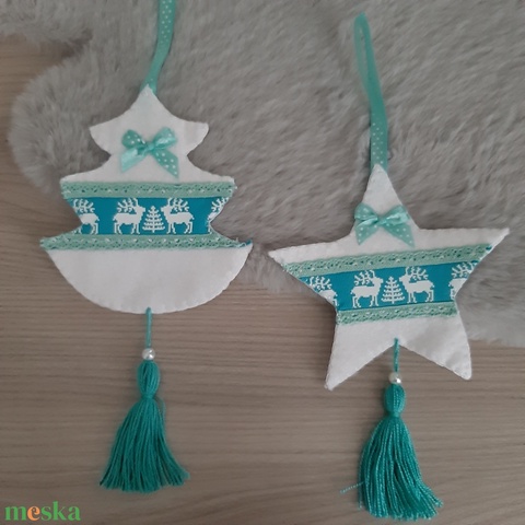 Filc téli duó - fehér és türkiz színvilágban, szarvasokkal