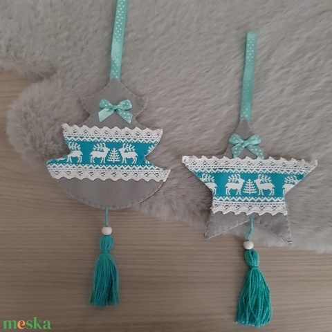 Filc téli duó - szürke és türkiz színvilágban, szarvasokkal