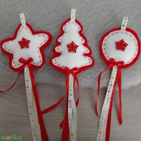 Filc téli trió - fehér-piros, csillagos szett, bézs, arany csillagos szalaggal