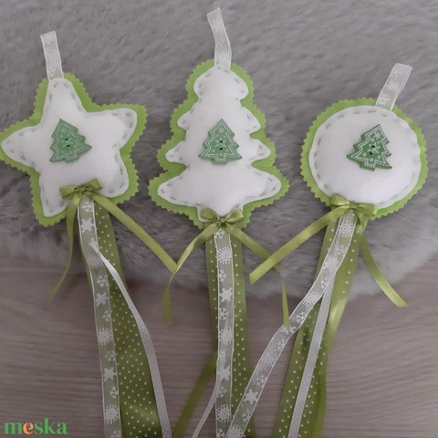 Filc téli trió - világoszöld, fenyőfás szett, hópelyhes szalaggal