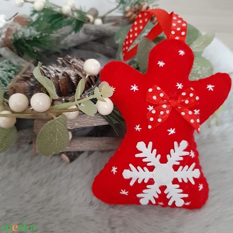 Filc karácsonyfadísz - hópelyhes, piros angyalka