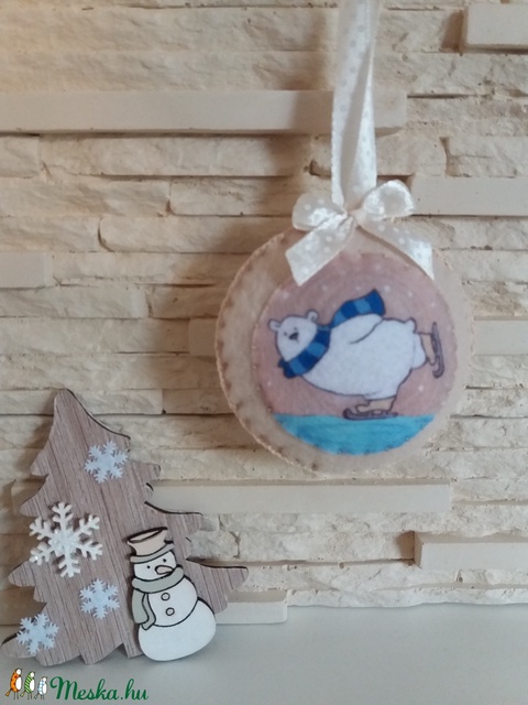 Filc karácsonyfadísz - korcsolyázó jegesmaci, bézs