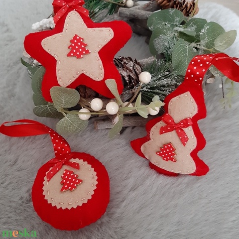 Filc karácsonyi dísz szett - pirosban, fenyőfával
