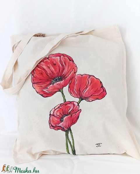 Bevásárló táska kézzel festett "pipacsos" mintával