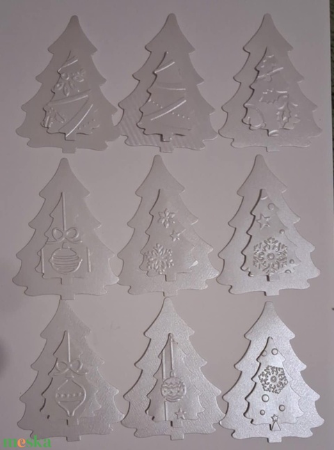 Egyedi dombormintás karácsonyi ajándékkísérő (hófehér fenyőfa) - csoportajándék - vendégajándék - ajándékkártya bárkinek