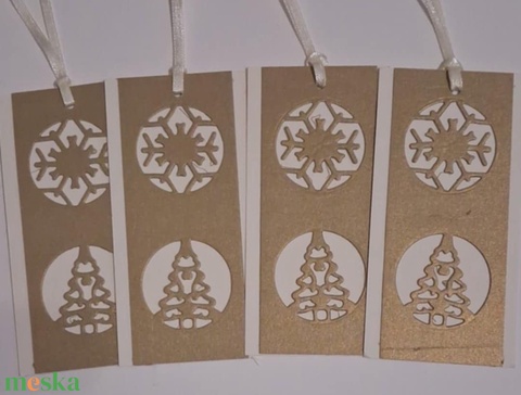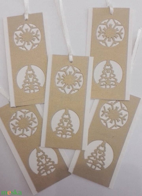 Áttört mintás egyedi karácsonyi ajándékkísérő - fenyőfával - hópehellyel - ajándékkártya - csoportajándék- egyedi