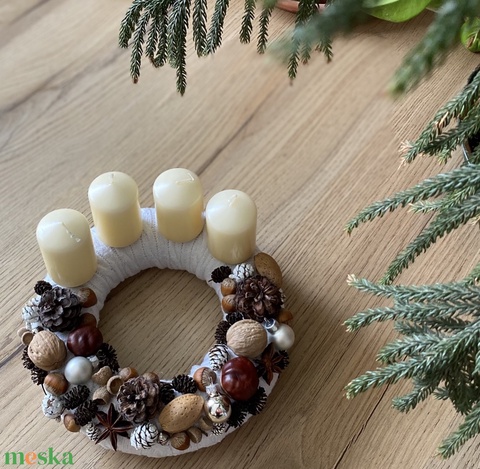 dió, mogyoró, gesztenye, gyertya, mécses, szalma koszorú, fenyő, éger