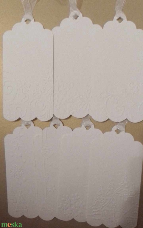 Dombormintás fehér karácsonyi ajándékkísérők - üzenetkártya - vendégajándék - csoportajándék - egyedi ajándékkártya