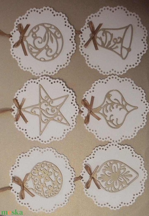 Kör alakú karácsonyi ajándékkísérő - áttörtmintás díszekkel - egyedi - csoportajándék - karácsonyfadísz - üzenetkártya