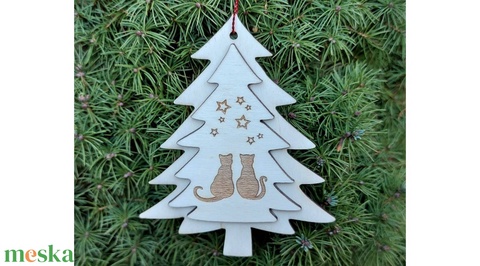 Fenyőfa alakú cicás karácsonyfadísz