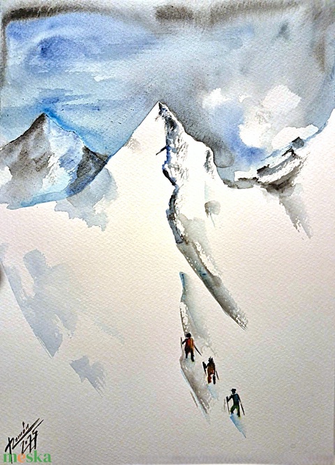 "Megmásszuk!" akvarellnyomat, festmény,