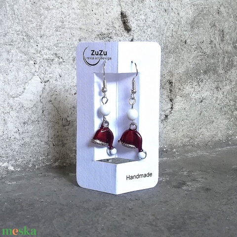 Mikulás sapka medálos, karácsonyi lógós fülbevaló, jáde ásványgyönggyel díszítve