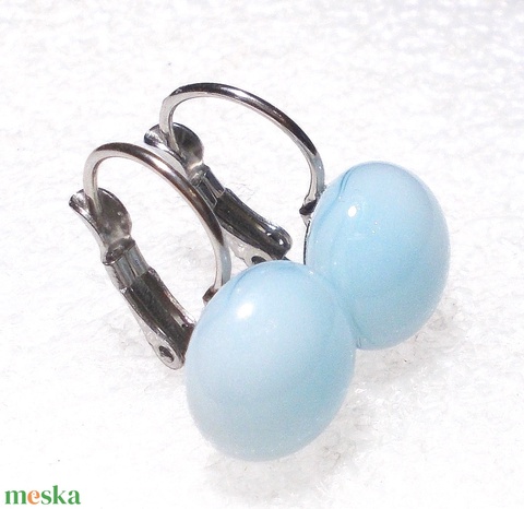 Puderkék üveg fülbevaló, ajándék nőknek névnapra, születésnapra.