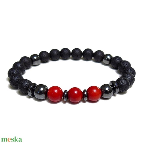 Férfi ásvány karkötő - lávakő, korall és hematit gyöngyökből