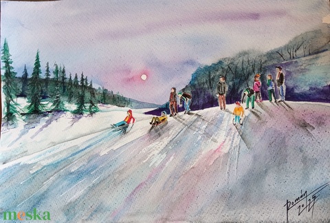"Téli hangulat" akvarell festmény, karácsony, tájkép