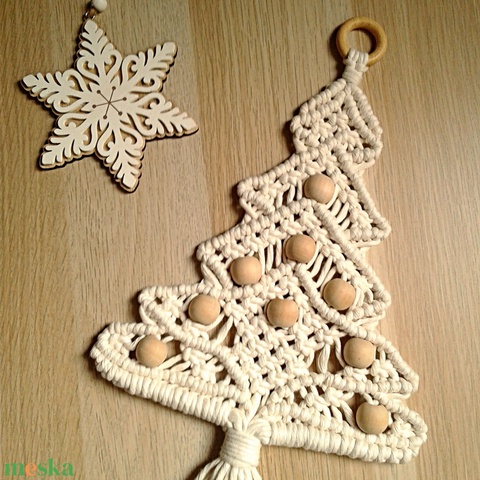 Natúr makramé fenyőfa, fali dekoráció, dísz