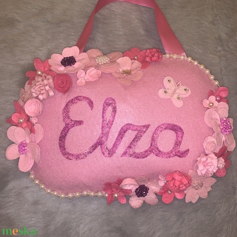 Virágos filc gyerek névtábla,ajtódísz,falidísz, babaszoba dekoráció
