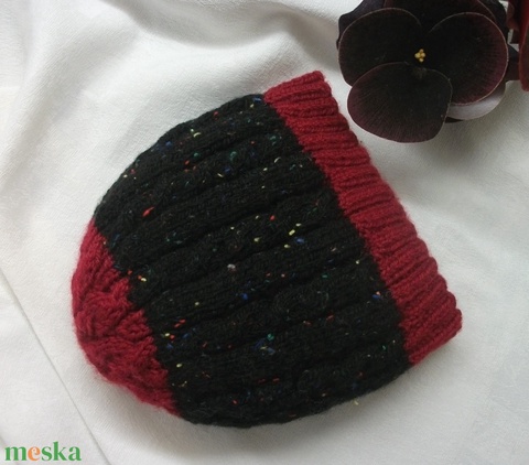 Kötött, fekete bordó sapka, színes, vidám, , meleg, női, sorozat