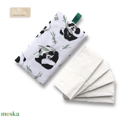 Panda mackó mintás pamut textil papírzsebkendő tartó - Artiroka design