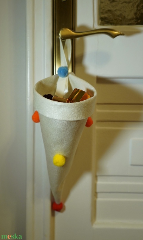 Mikulás-tölcsér, ajándékátadó tasak, filc dekoráció