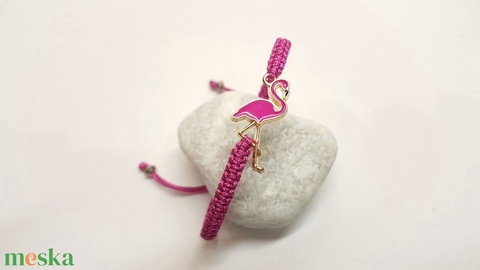 Pink színű flamingó medálból ( 25 mm x 15 mm ) készítettem a karkötőt makramé csomózástechnikával.