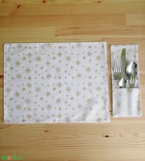 Kétszemélyes "Arany" ünnepi, vászon tányéralátét evőeszköztartóval