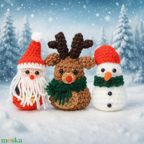 horgolt téli kollekció - Mikulás, rénszarvas, hóember