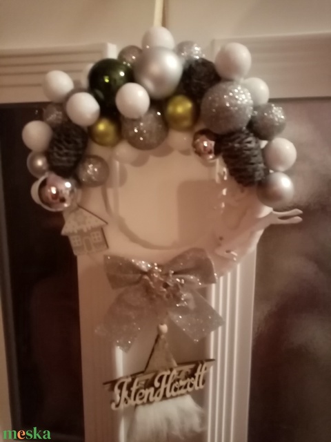 - Anyaga: koszorú alap, gömb díszek, szalag