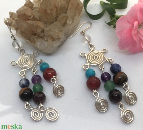ezüstözött drót, gránát, karneol, tigrisszem, aventurin, türkenit, szodalit, ametiszt, hegyikristály