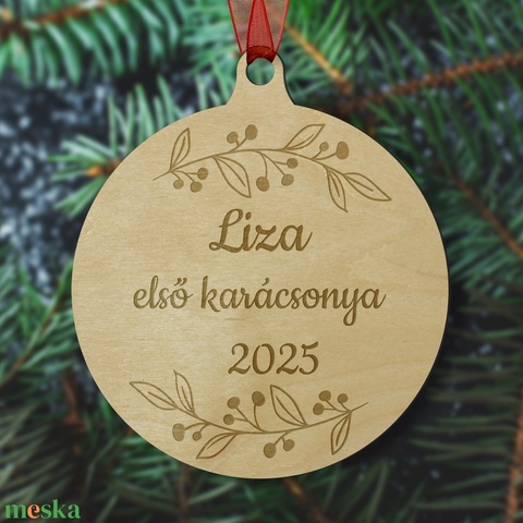 Kisgyerek első karácsonya névre szóló karácsonyfadísz fából, lézervágott egyedi dekoráció