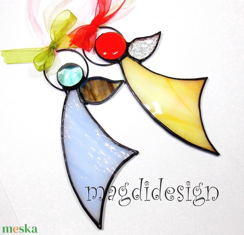 Karácsonyi tiffany angyalkák 2 db, kék, beige