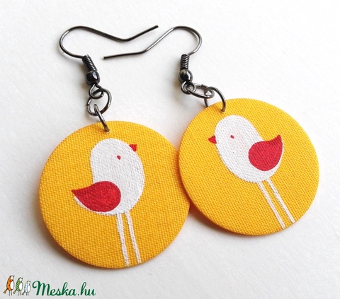 Sárga madárkás textilfülbevaló - Csicsergők sorozat - lefoglalva