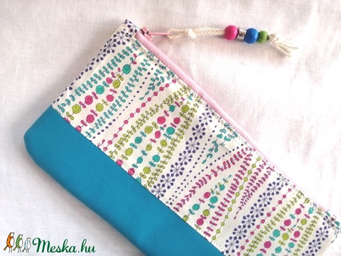 textil, cipzár, puha műbőr, gyöngy, zsinór
