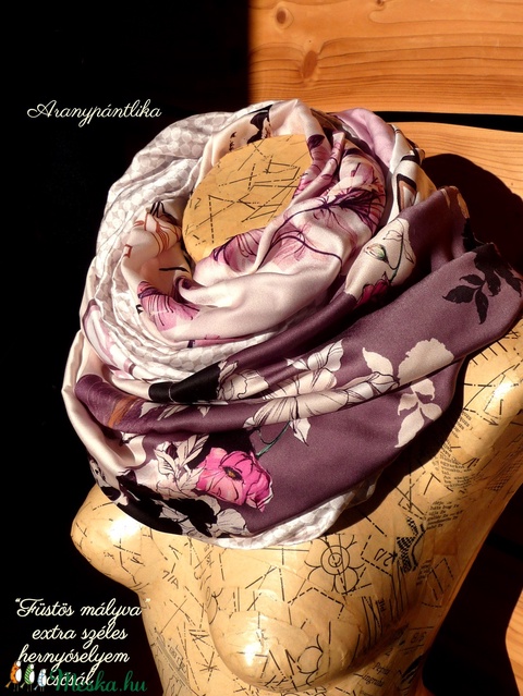 "Füstös mályva" EXTRA SZÉLES hernyóselyem-szaténselyem csősál - Aranypántlika