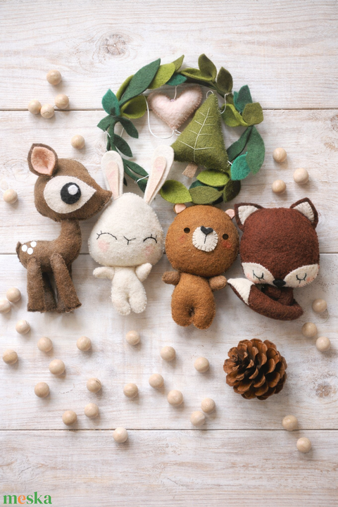 BABAFORGÓ erdei állatokkal, nyuszi, róka, szarvas, maci, kézműves termék Mancsicsi műhelyéből