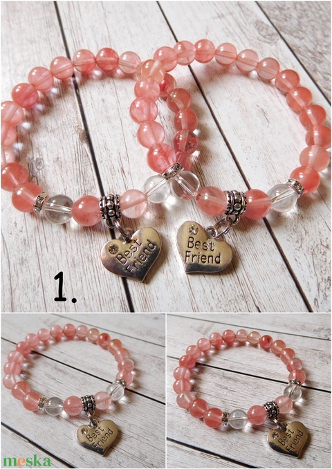 cseresznyekvarc, hegyikristály, gumidamil, ezüst színű szerelék