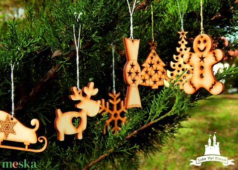 Fa karácsonyfa dísz csomag, 7 db-os