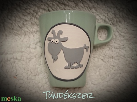 Kecske kecskés állatos mókás vicces bögre gyurma díszítéssel ajándék