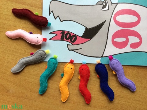 Kukacvető, célba dobást gyakorló családi társasjáték 8 db filc állatfigurával