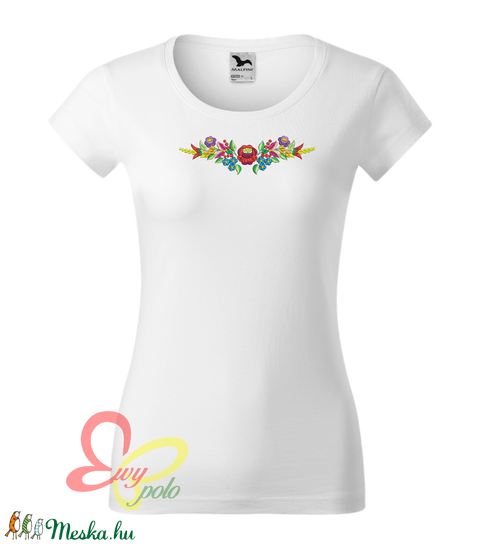 - Anyaga: pamut póló, viszkóz hímzőcérna