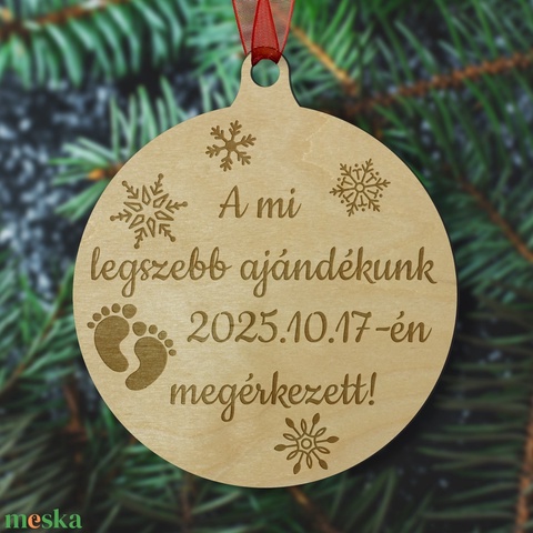 Újszülőtt első karácsonya neves karácsonyfadísz, gravírozott egyedi dekoráció hópihe mintával fából