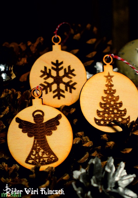Fa karácsonyfa dísz csomag, 3 db