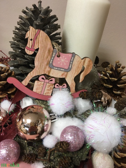 - Anyaga: szárított termések, gyertya, fadekor, gömbök, müanyag tál